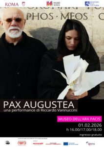 Al museo dell’Ara Pacis il 1 febbraio 26 in occasione dell’apertura mensile gratuita del museo in scena la performance PAX AUGUSTEA, una performance di teatro danza a cura di Riccardo Vannuccini che propone in maniera poetica e indiretta il tema della pace e il rifiuto di qualunque tipo di violenza in questo momento storico.